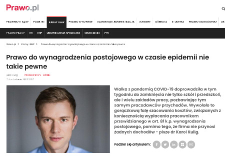 Za dzisiejszą sytuację pracodawców i pracowników odpowiada Państwo, które w imię słusznej i koniecznej walki z pandemią, podjęło konkretne rozwiązania prawne, wpływające na prawa i wolności obywateli. Zupełnie zasadne wydaje się zatem postulowanie o przyjęcie takich pomocowych rozwiązań prawnych, które zapewniłyby pracownikom, którzy nie mogą wykonywać pracy ze względu na prawne ograniczenia funkcjonowania zakładów pracy, świadczenia z funduszy społecznych. Nie ma przekonujących argumentów za tym, aby to wyłącznie pracodawcy ponosili niemożliwe nawet dzisiaj do przewidzenia i oszacowania koszty związane z zapobieganiem rozprzestrzeniania się COVID-19.
